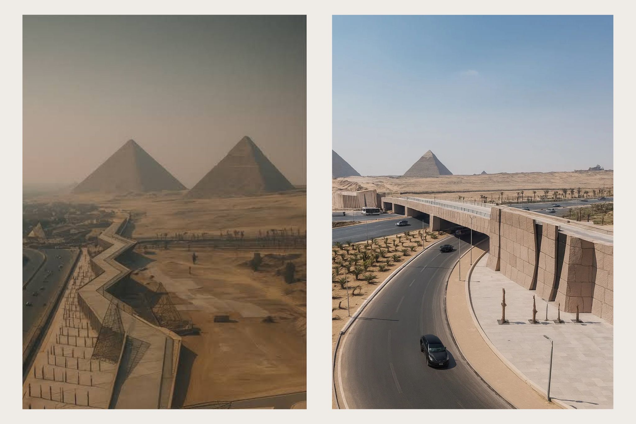 | Una pasarela que une el GEM con las pirámidesOtra de las grandes novedades que acompañan la apertura del Gran Museo Egipcio es la nueva pasarela peatonal panorámica que conecta directamente el museo con el recinto monumental de las Pirámides de Giza, ofreciendo una experiencia totalmente renovada para los visitantes.• Distancia: tiene una extensión de aproximadamente 1,3 kilómetros, un recorrido agradable y accesible que permite disfrutar de vistas únicas del complejo de Giza durante todo el trayecto. Su amplitud y trazado han sido cuidadosamente diseñados para ofrecer un paseo seguro, cómodo y visualmente impactante, ideal tanto para quienes deseen recorrerlo a pie como para quienes prefieran un desplazamiento más relajado.• Diseño: combina arquitectura contemporánea y respeto por el entorno histórico. La pasarela ha sido concebida con criterios de sostenibilidad y bajo impacto ambiental, utilizando materiales que se integran con el paisaje desértico. Dispone de amplias zonas peatonales y cuenta con vehículos eléctricos tipo shuttle, pensados para facilitar el acceso a personas mayores o grupos, manteniendo un entorno silencioso y libre de emisiones.• Tarifa: el acceso a la pasarela no tiene coste adicional y puede utilizarse libremente durante la visita, aunque no incluye las entradas al museo ni al recinto de las Pirámides, que siguen gestionándose por separado.Esta nueva conexión supone una manera moderna, cómoda y escénica de enlazar ambas visitas, ofreciendo al viajero la posibilidad de vivir una experiencia continua entre el pasado y el presente de Egipto. Una oportunidad única para integrar el GEM y las Pirámides en un mismo recorrido, en un entorno que une patrimonio, diseño y sostenibilidad. |